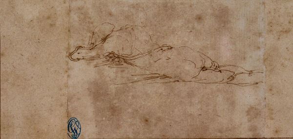 Signed. "Study of a reclining figure" small drawing on paper in sepia ink