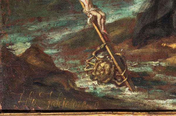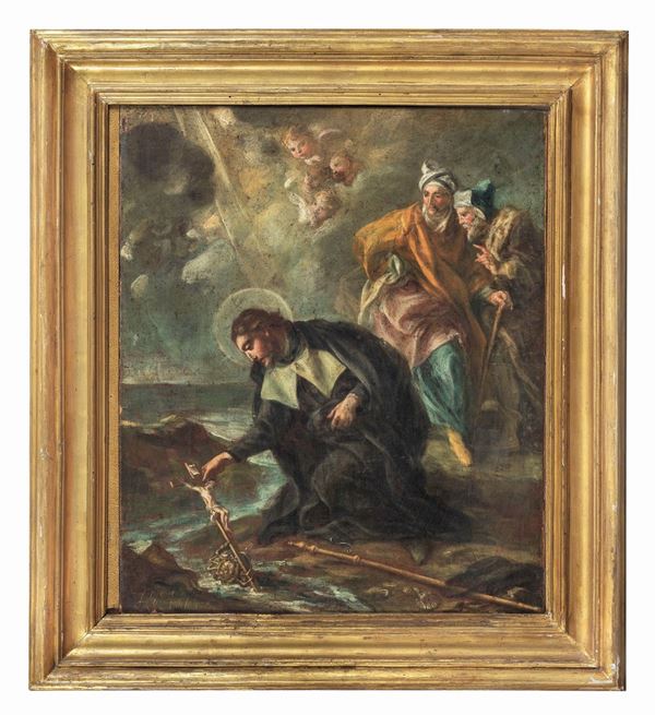 Signed. 'The crab brings back to San Francesco Xavier the crucifix that fell into the sea' valuable oil painting on canvas by the Neapolitan [..]