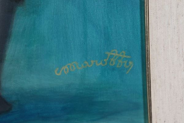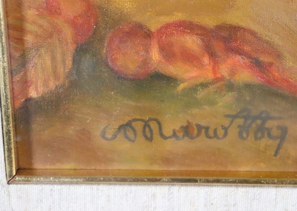 Signed. "Vase with bunch of flowers" and "Still life of fish and crustaceans", lot of two oil paintings on canvas