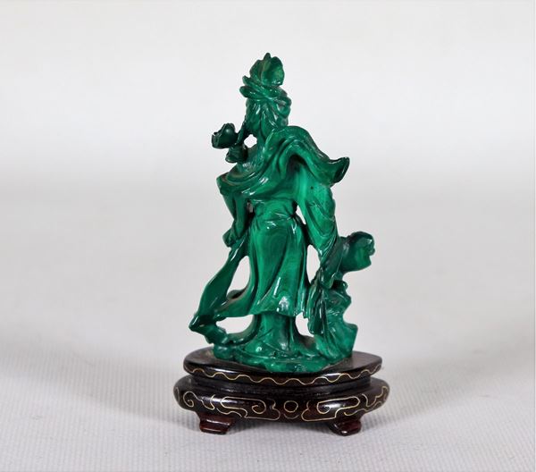 Small Chinese malachite sculpture "Courtesan with roses"