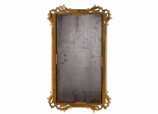 Small mirror in ivory lacquered wood with curls carved at the four corners, mercury mirror