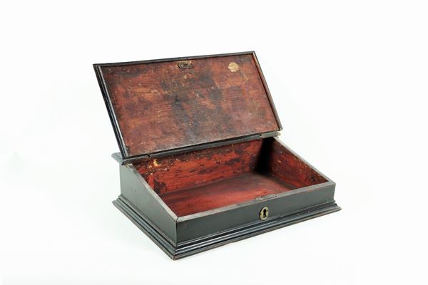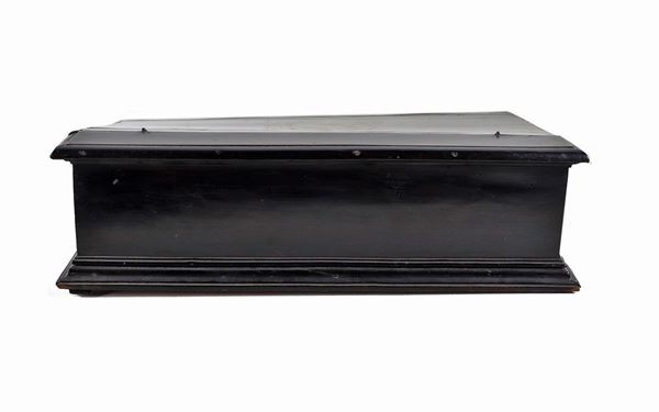 Small travel desk in ebonized wood with the cardinal's coat of arms in the center
