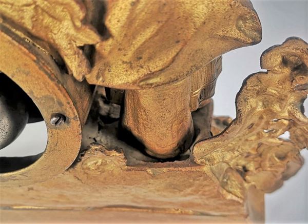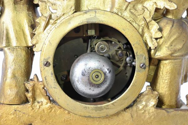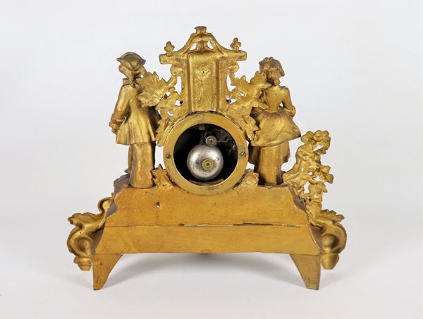 Table clock in gilded, chiseled and embossed metal with Sévres porcelain dial