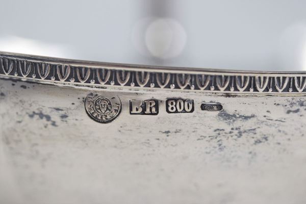 Three-tier silver stand embossed and chiseled with Empire motifs of laurel wreaths and dolphins gr. 1170