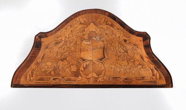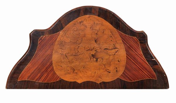 Two small rounded shaped drawers in walnut, purple ebony and rosewood
