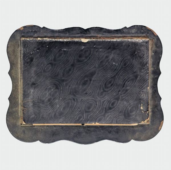 Antique small oval picture frame in ebonized wood, with mother-of-pearl inlays with floral and butterfly motifs