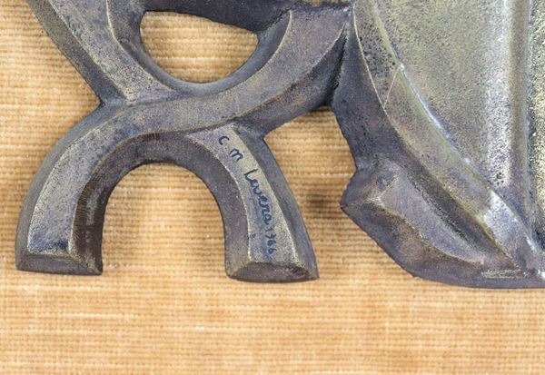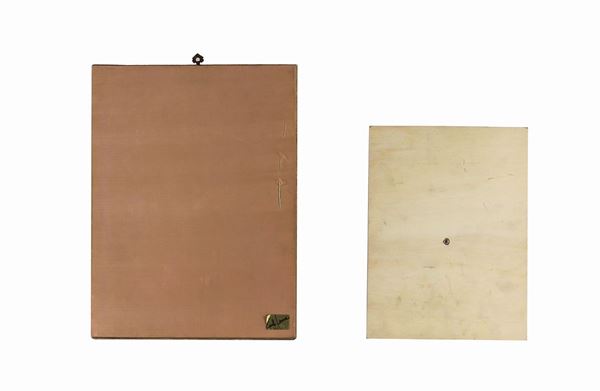 Lot of two high reliefs in patinated and silvered bronze "Madonna with Child" and "Angel with trumpet"