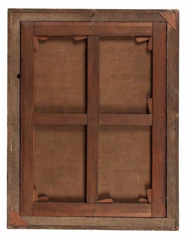 antique Salvator Rosa frame in gilded wood in mecca. The painting is relined and has various restorations, 98 x 74 cm.
