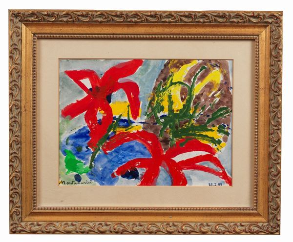 Signed and dated 1989. "Palms" mixed technique 21 x 29 cm