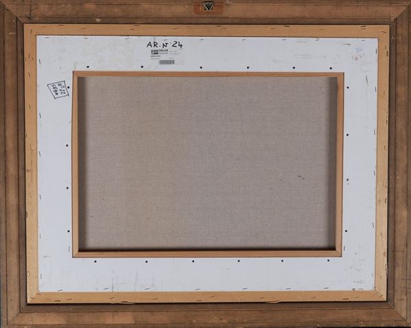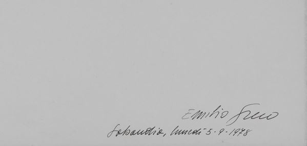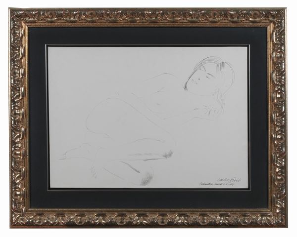 Signed and dated Sabaudia 1978. "Nude of a woman" drawing in ink on paper glued to canvas 50 x 70 cm