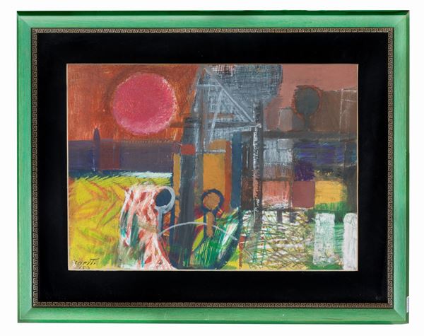 Signed and dated. "Sunset" mixed technique on cardboard 33 x 46 cm