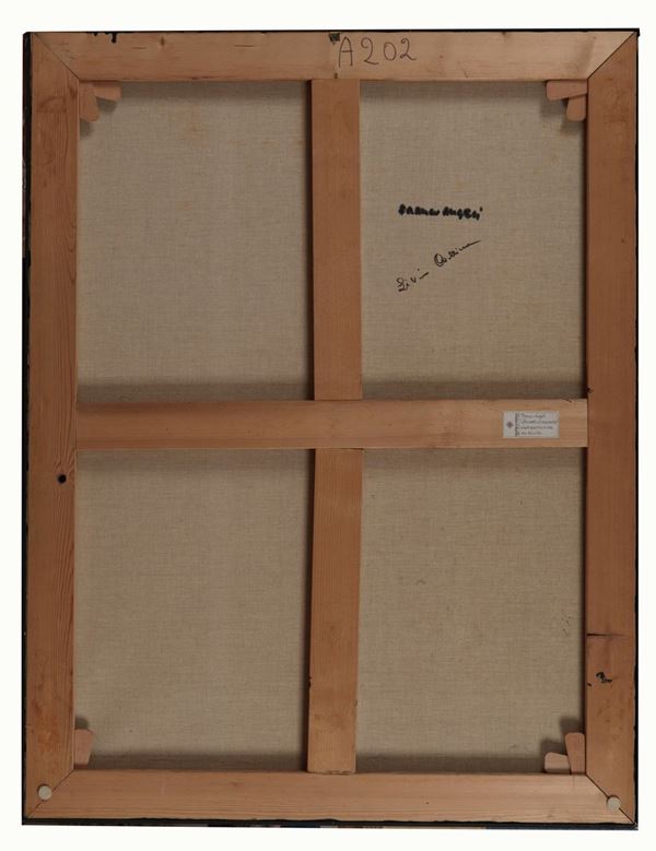 Authentication of the Franco Angeli Archive & nbsp; Rome March 2017, archived under the number: P090317 / 930. On the frame label "La Bussola" Gallery of Turin. Black rod frame.