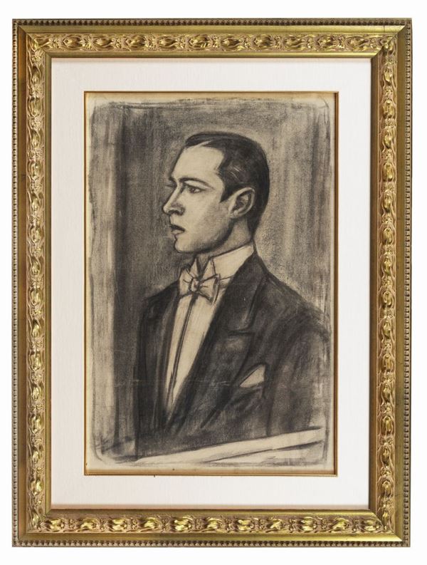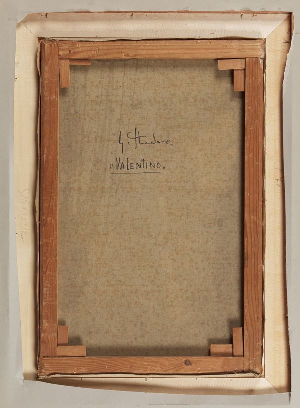 Signed on the back of the canvas. "Valentino" charcoal on canvas 60 x 40 cm