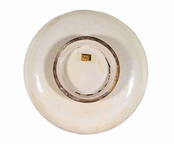 Amateur crepe in Casteldurante majolica, with colorful "Emilia Bella" decoration in the center