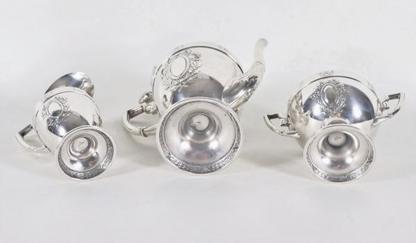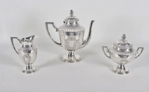 Antique chiseled and embossed Sheffield coffee service (3 pcs)