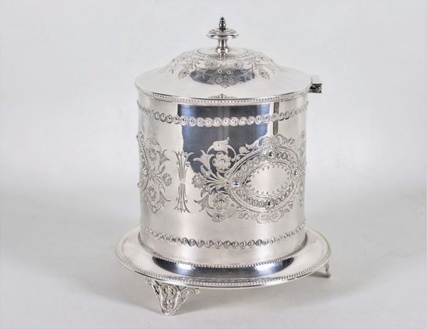 Antique English Sheffield cookie jar, entirely chiseled and embossed with Adam motifs