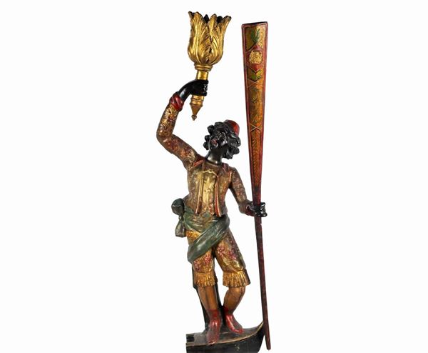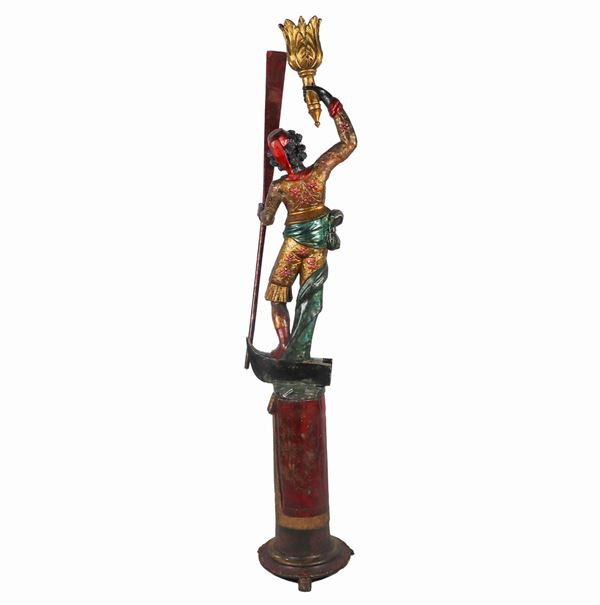 Antique "Venetian Moretto" sculpture in polychrome lacquered wood