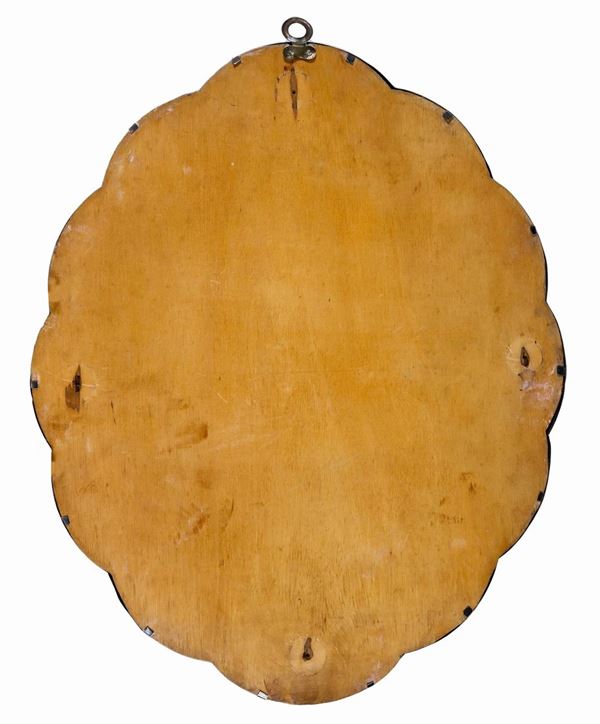 Art nouveau mirror in silver metal with arched edge and mercury mirror