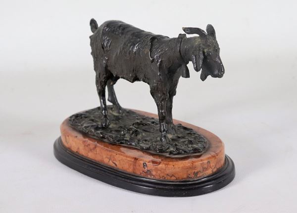 "Capretta", ancient bronze sculpture supported by an oval marble base