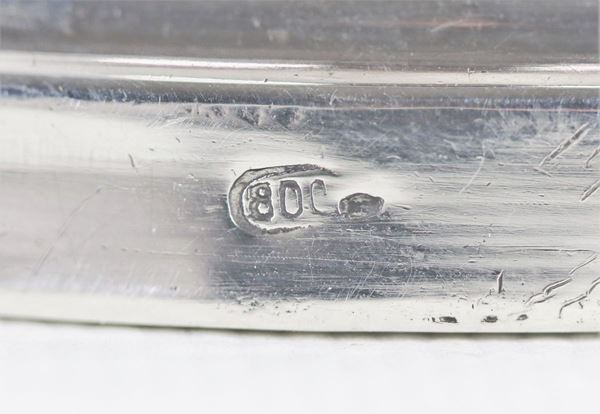 Chandelier in chiseled and embossed silver with Louis XVI motifs, gr. 350
