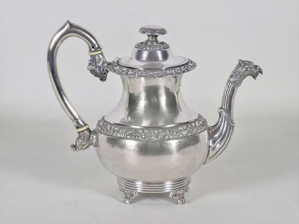 Ferdinando I coffee pot in chiseled and embossed silver, gr. 780