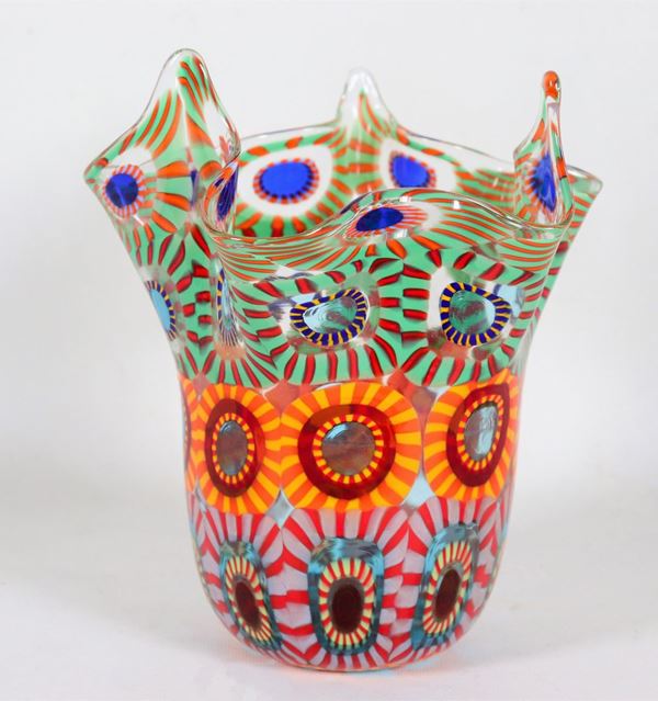 Handkerchief vase in Murano glass with multicolored Murrine