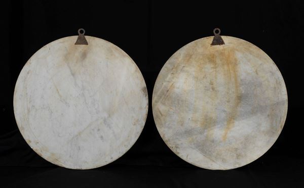 "Heads of Roman Emperors", pair of medallions in white marble and porphyry marble