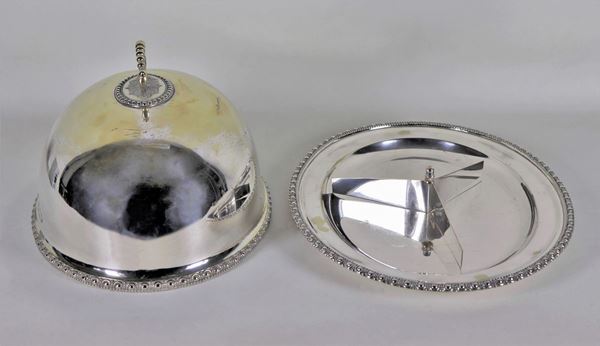 Large English lunch box for roasts in embossed and chiseled silver metal