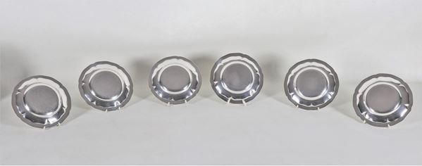 Lot of six silver bread saucers with chiseled edges, slightly different, gr. 680
