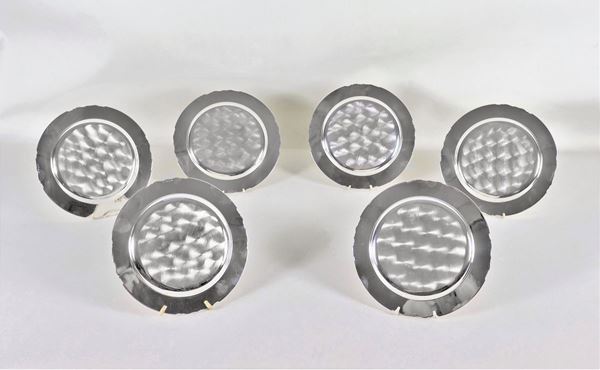 Lot of six small round silver plates with embossed edges in volutes, gr. 1240