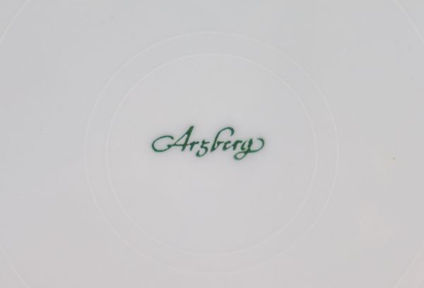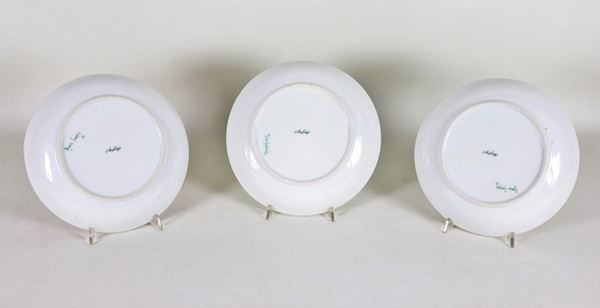 Lot of three wall plates in polychrome porcelain and pure gold, decorated with bunches of flowers