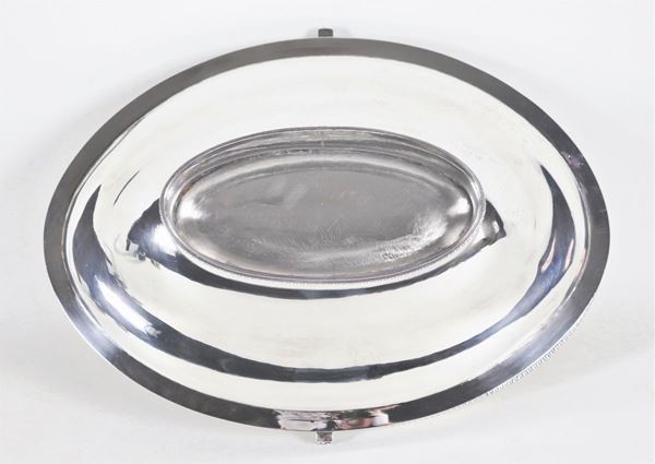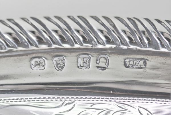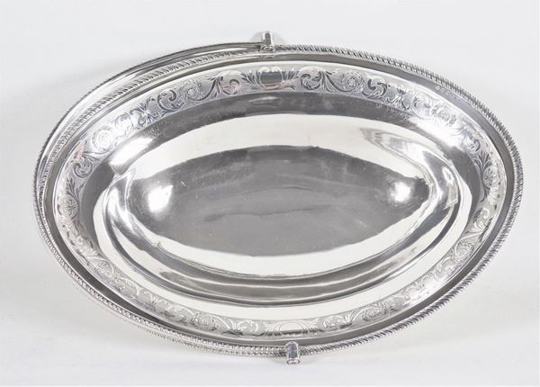 Oval basket with handle from the George III era in silver, with a band on the inside chiseled with floral scrolls, gr. 830