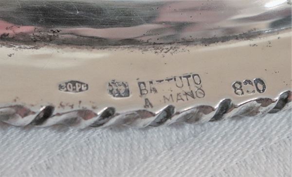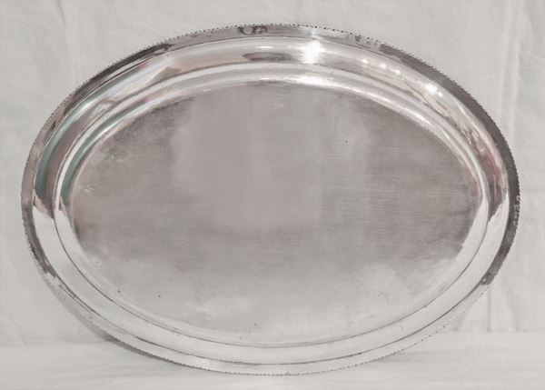 Oval serving tray in silver with embossed edge, gr. 1230