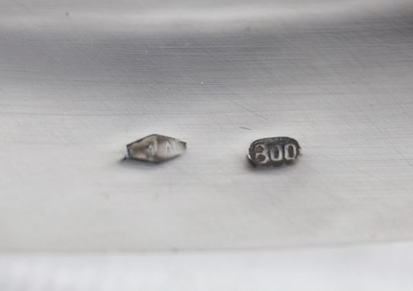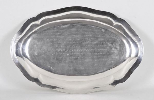 Oval serving tray in silver with ribbed and embossed edge, gr. 1500