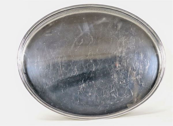 Oval tray in silver with perforated railing, gr. 1860