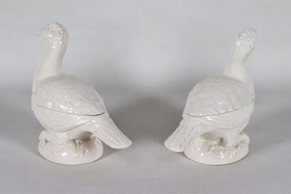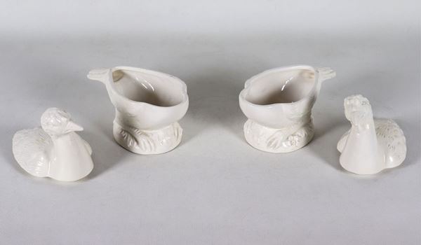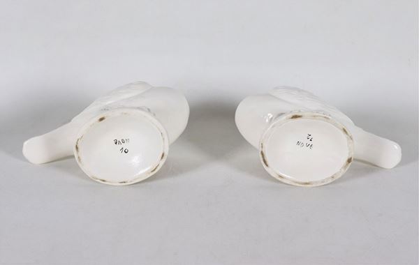 Pair of boxes in the shape of birds in white glazed ceramic Le Nove
