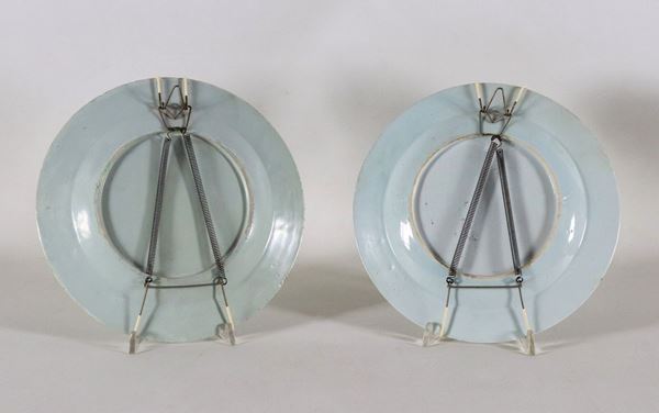 Pair of Chinese plates in porcelain Quing Dynasty 1644 - 1911, decorated in red and blue Imari enamel with exotic flower motifs