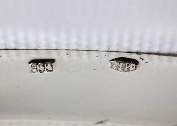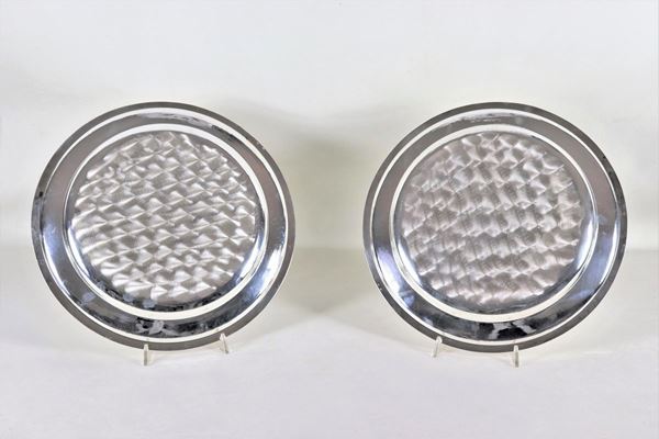Pair of large round silver serving plates with chiseled edges with Empire motifs, gr. 1590
