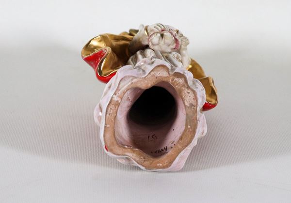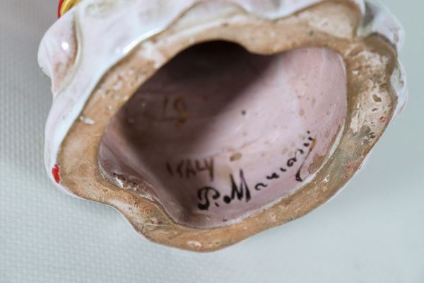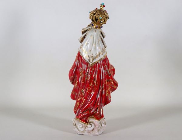 Porcelain, glazed and polychrome ceramic sculpture "Madonna with Child". Signed by Paolo Marioni - Ceramiche Firenze