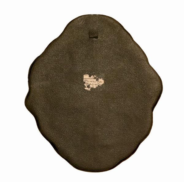 Roman holy water stoup in chiseled and embossed silver with angel sculpture, mounted on a green velvet support