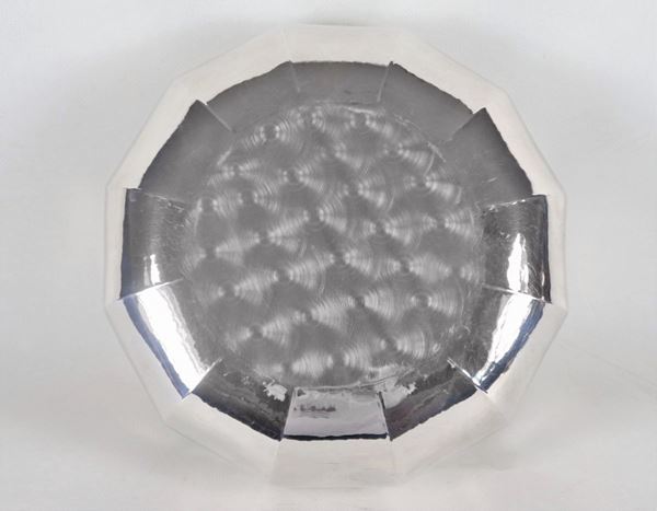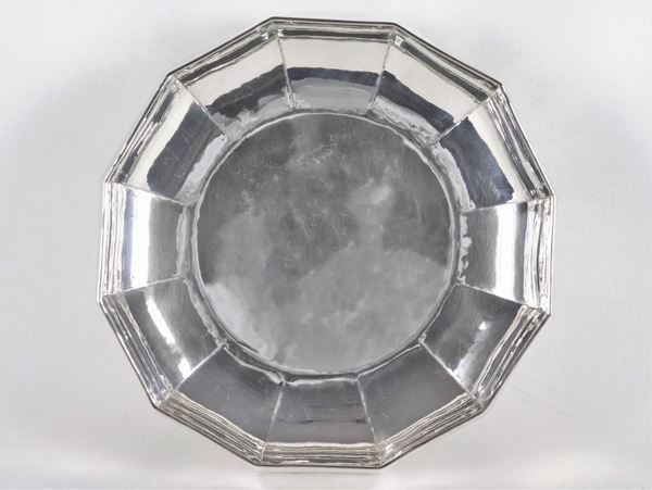 Round fruit bowl in hammered silver with shaped edge, gr. 480