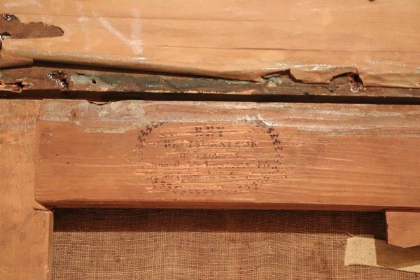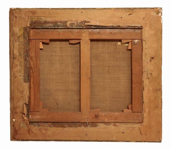 frame in gilded and carved wood and stucco. The canvas has a defect, 53 x 65 cm.