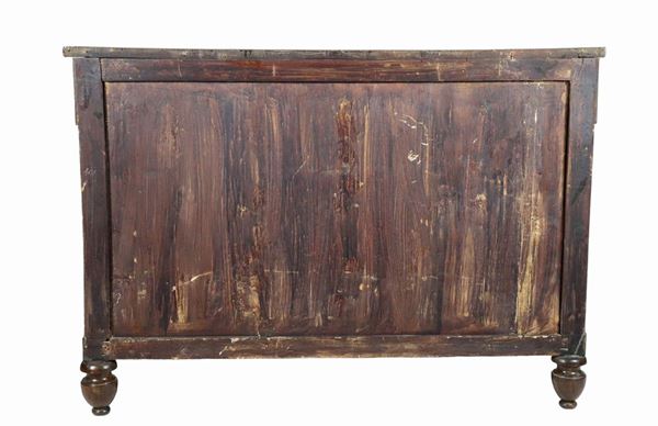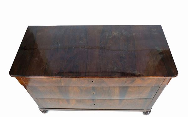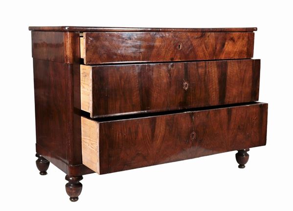 Second Empire chest of drawers, in walnut with three drawers and turned legs