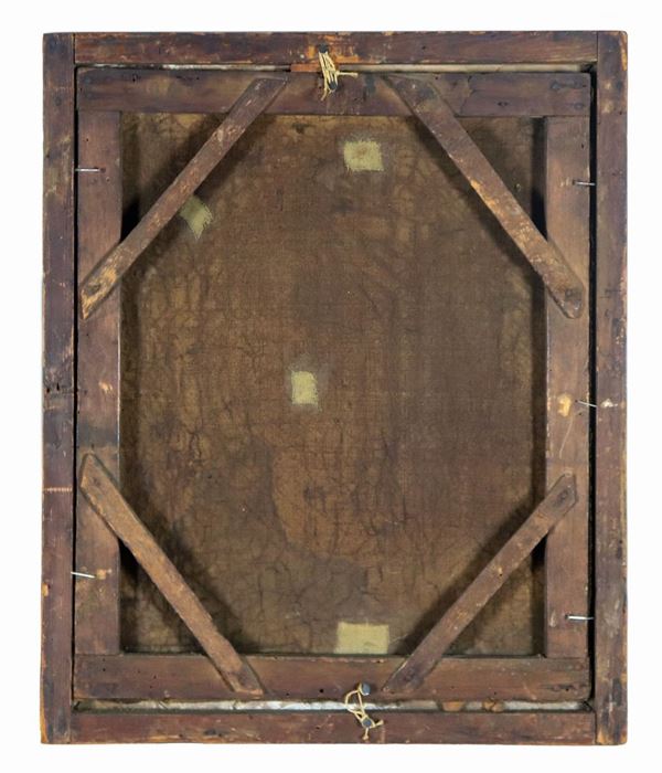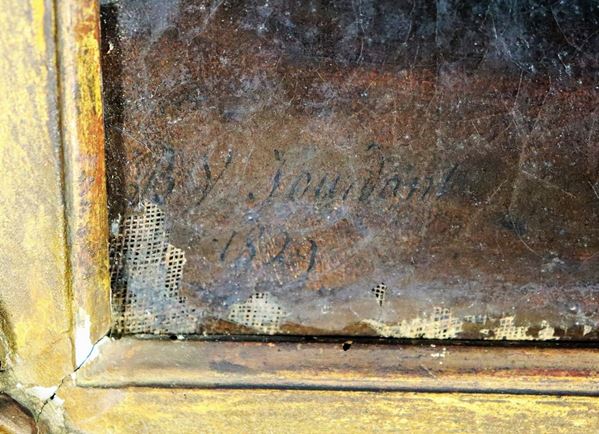 Signed and dated 1829. "Encounter in an interior", small oil painting on canvas
