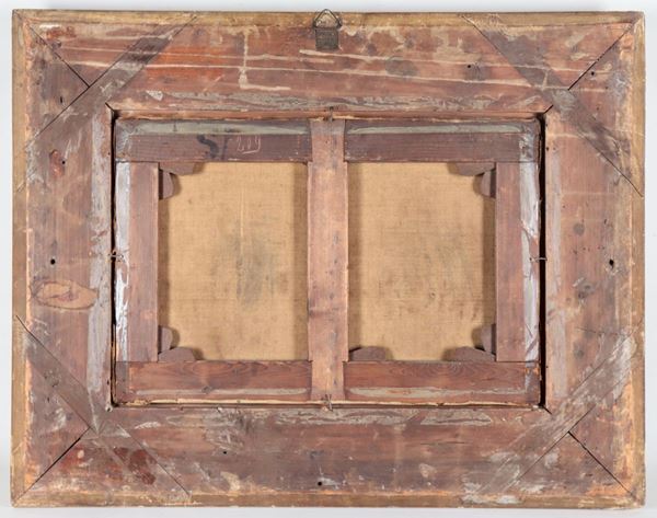 period frame in gilded wood and carved with stucco. The frame has some flaws, 31 x 46.5 cm.
