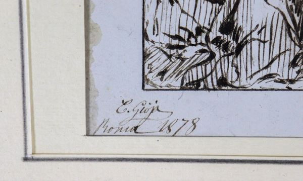 Signed and dated Rome 1878. "Crucifixion", ink drawing on paper