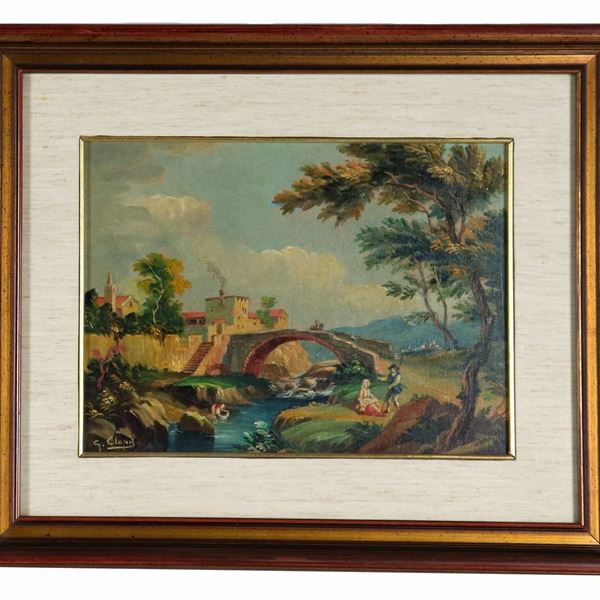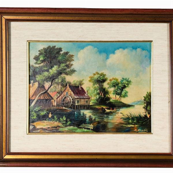 Signed. "Landscapes with waterways", pair of oil paintings