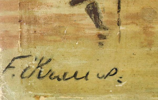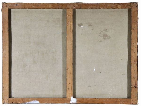 Signed. "Marina with small port and castle", oil painting on paper applied to canvas