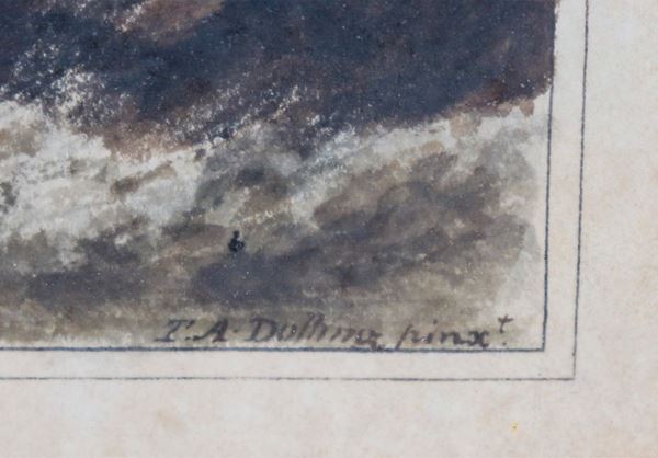 Signed. "The Marmore waterfall near Terni", gouache on paper