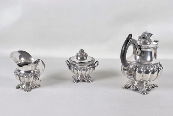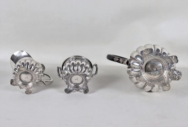 Silver coffee service, Ferdinand II period, chiseled and embossed (3 pcs), gr. 1240